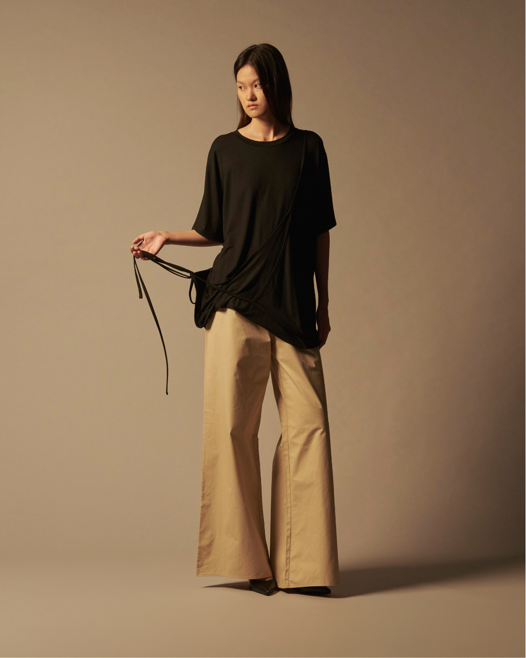 A versatile convertible garment designed for effortless adaptability. Crafted in a powder pink and black colorway, this piece blends comfort and structure with its soft modal-spandex composition. Made in South Korea.