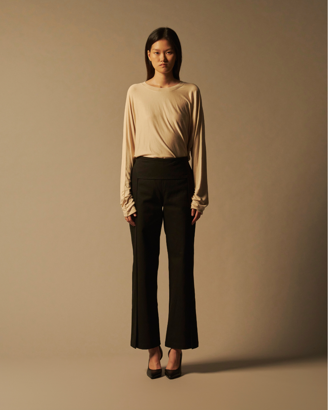 A frame-structured silhouette with a narrow cut, designed to emphasize clean proportion and subtle rigidity. Executed in pure black cotton, the style merges architectural precision with tactile comfort. Made in South Korea.